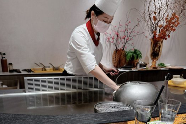 專業(yè)大廚現(xiàn)場烹制,鐵板燒的烹飪方式能很好地保留食材原汁原味,大廚們對火候掌控精準,讓每一道菜都達到最佳口感。