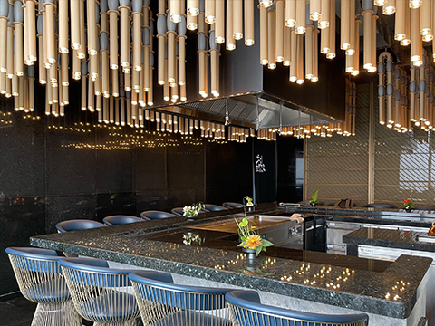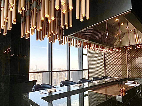 銀座小野寺長沙店位于建鴻達(dá)JW萬豪酒店35樓,置身于高空之中,獨家視野俯瞰整個長沙,高級暗黑風(fēng)的裝修風(fēng)格。