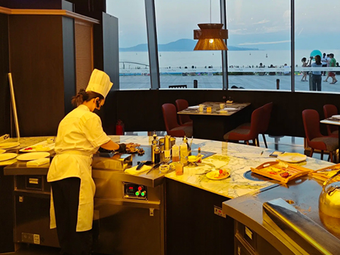 在浪漫威海的全新地標(biāo)-至海港灣邂逅云漫鐵板燒,這里開放式的廚房讓你能近距離觀賞廚師的精湛技藝。