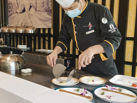 鐵板燒形式: 餐品主要在客人面前的大型鐵板上現(xiàn)場烹制,兼具觀賞性與美味。