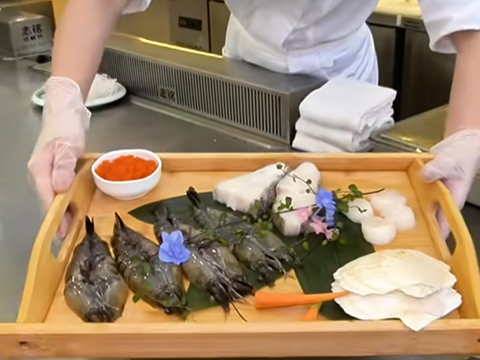 鐵板燒表演:廚師現(xiàn)場烹制(火焰表演、花式技巧),互動(dòng)感強(qiáng)。